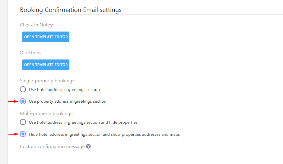 If the properties are scattered throughout the city, the option to show the properties' addresses instead of the hotel address in Settings > Communication and Notifications > Email Setup should be checked.