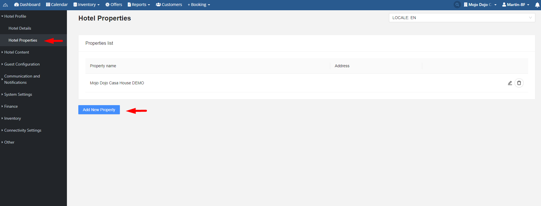 To create a separate property go to Settings > Hotel Profile > Hotel Properties. click "Add New Property" and fill out all the details in the window that pops up. Here you will include the address of the property for easier navigation.