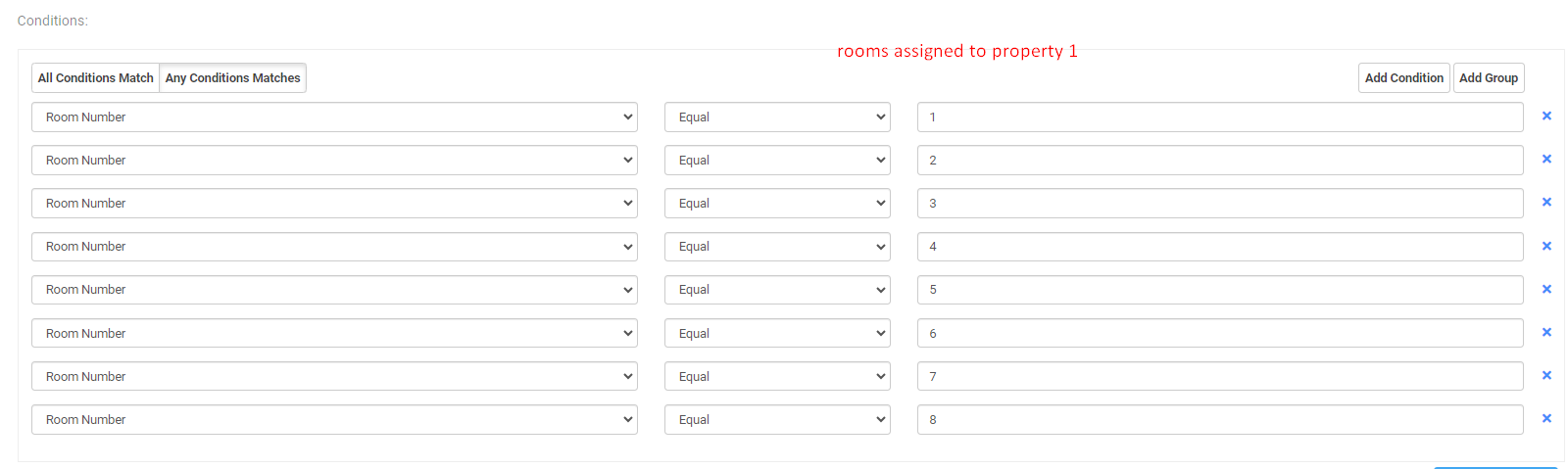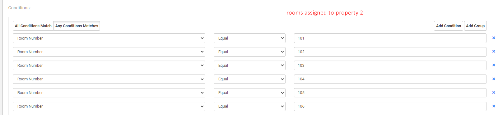 After creating the rooms, a separate rate must be made and associated depending on the property they are assigned to.