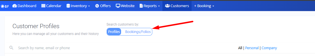 This feature improves how you search for customers within the system. Once enabled, you’ll be able to search for customers either by their profile or by details from their booking/folio. A new set of search options will appear in the Customer tab to support this functionality.